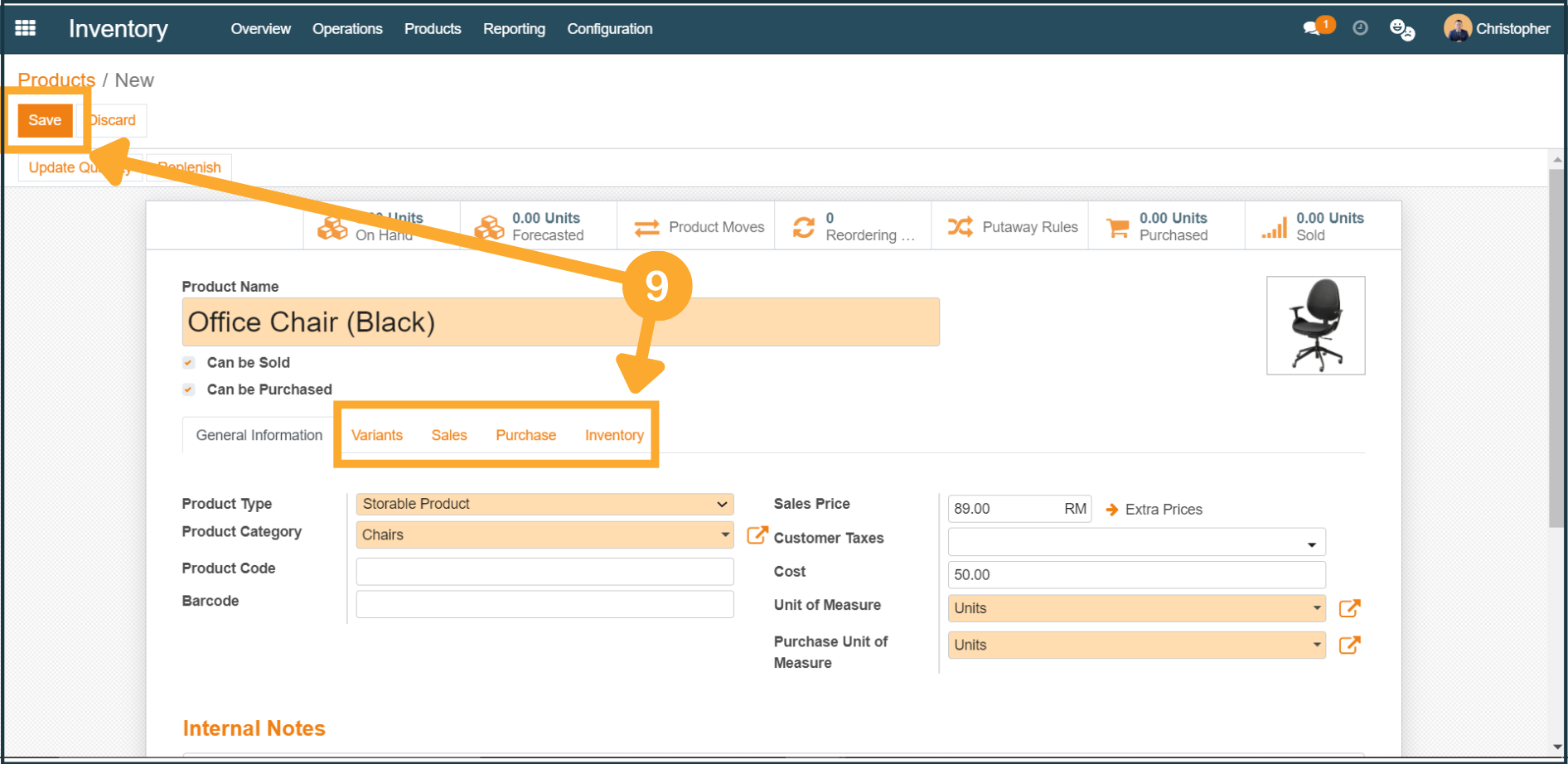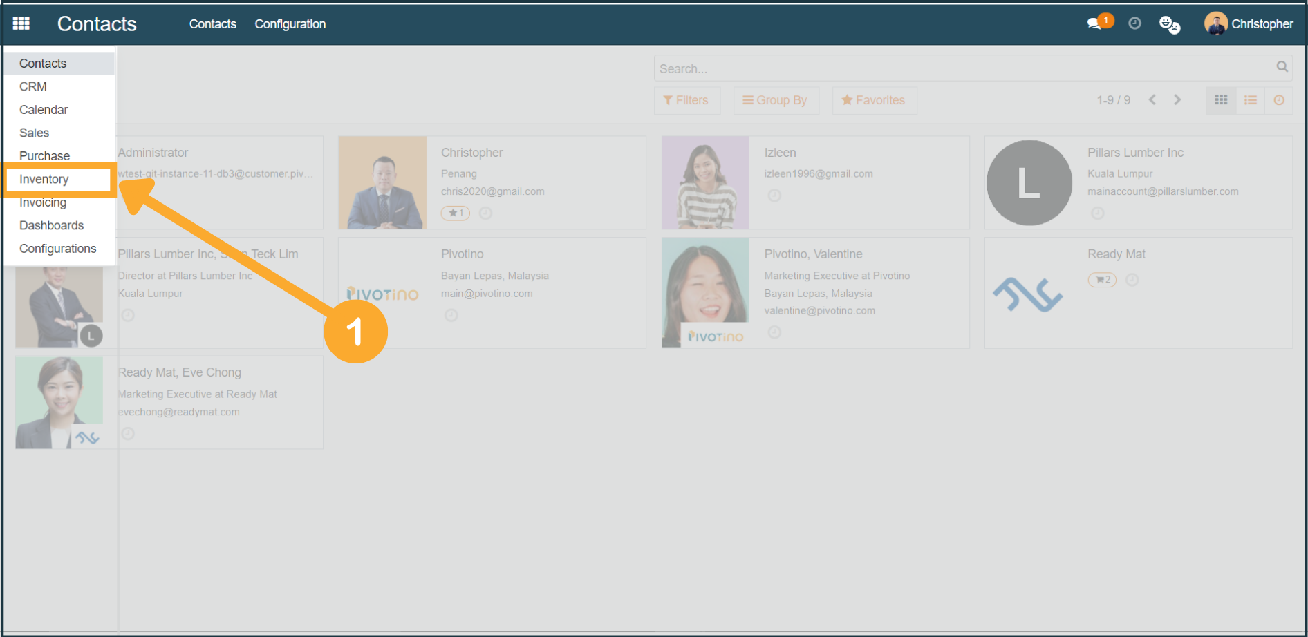 1. To create/add a new product, first, click "Inventory" at the dropdown menu.