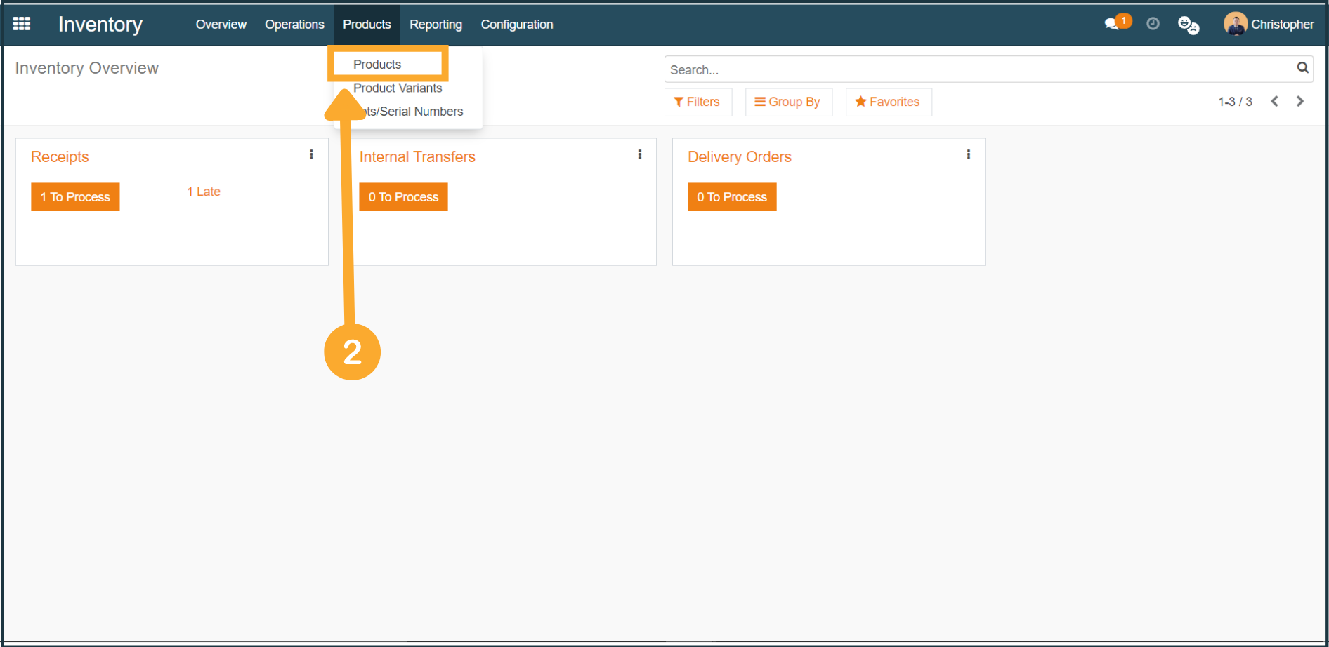2. At Inventory, click "Products" from the top menu bar, then proceed to click "Products" from the dropdown menu.