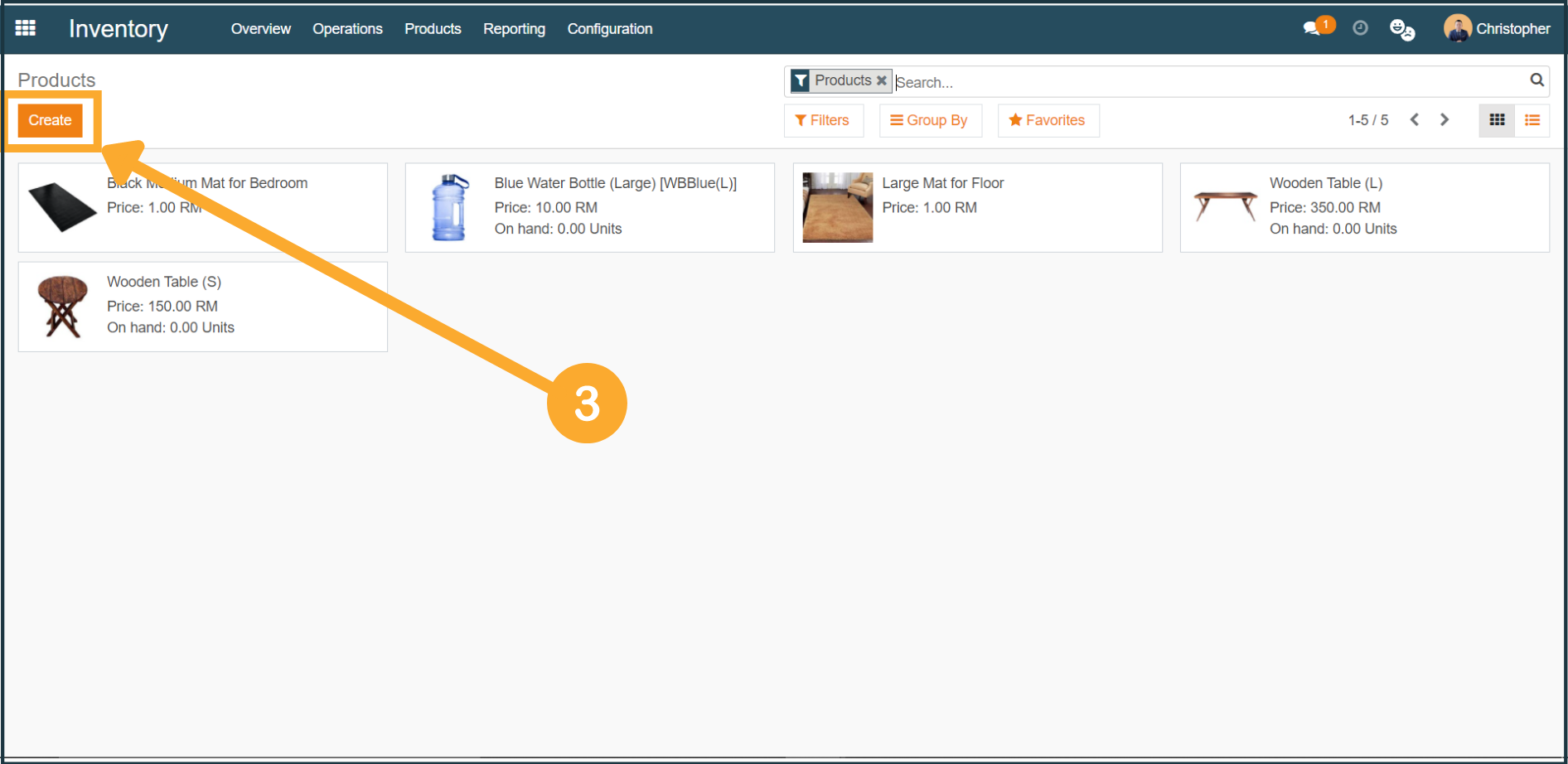 3. Upon reaching the Products page, click "Create".