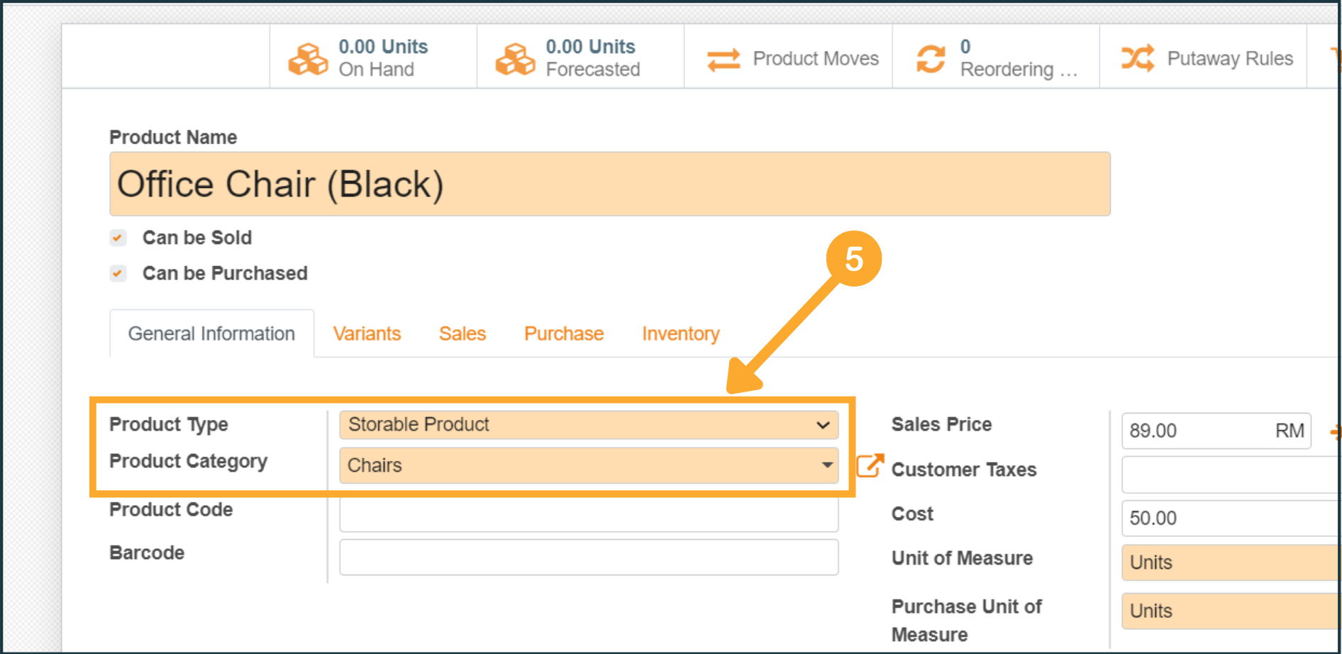 5. At the General Information tab, the Product Type and Product Category are highly advised to be configured according to your own business needs.